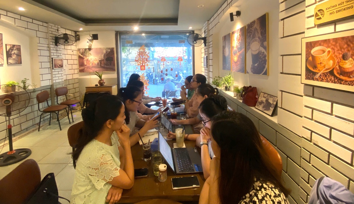 Tổ Tự nhiên 2 họp tại không gian cà phê sách – nơi gợi cảm hứng sáng tạo, kết hợp chia sẻ chuyên môn và định hướng xây dựng hoạt động STEM hiệu quả.