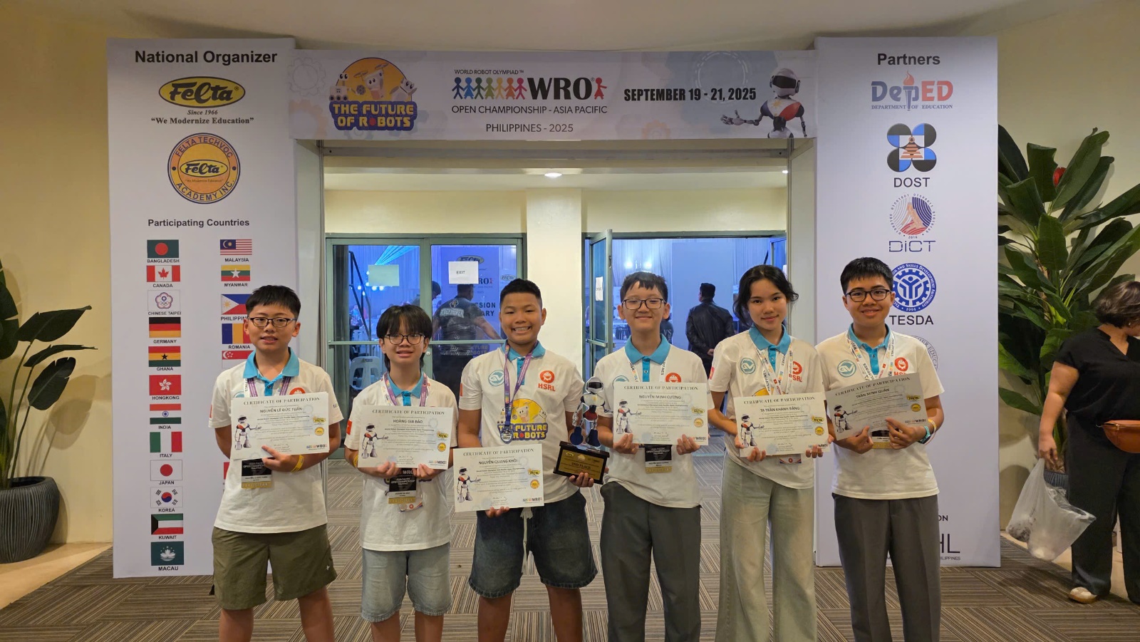(Hai đội thi của nhà trường thamg gia vòng chung kết World Robot Olympiad – Open Championship Asia & Pacific 2025 tại Philippines)
