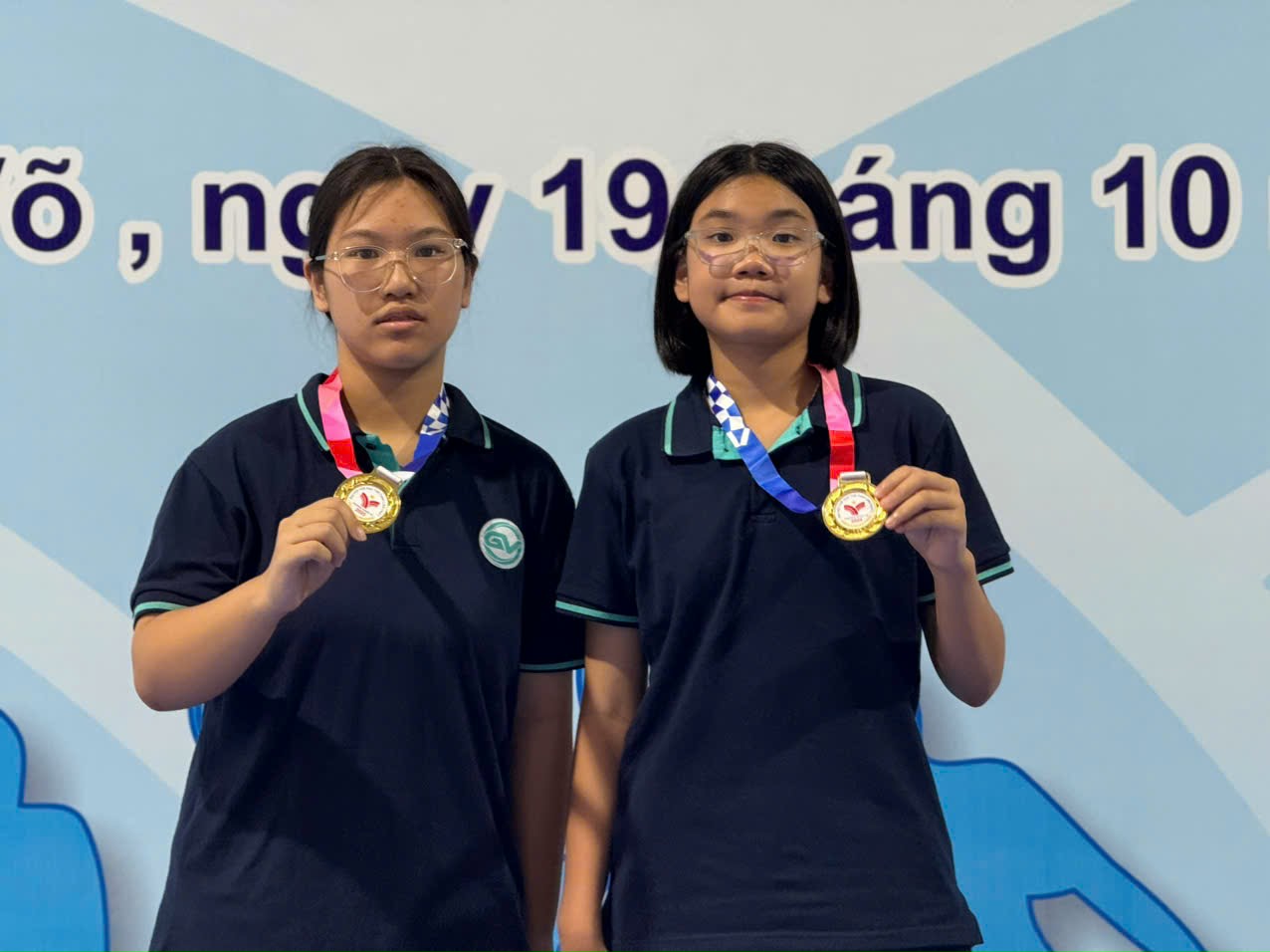 Đặc biệt, hai nữ sinh Trịnh Cẩm Linh (8A4) và Lê Khánh Hà Linh (9A5) đã để lại ấn tượng sâu sắc khi cùng nhau bước lên bục cao nhất ở nội dung đôi nữ. Với lối đánh linh hoạt, phối hợp ăn ý và tinh thần thi đấu kiên cường, hai em đã vượt qua nhiều đối thủ mạnh để mang về niềm vui chiến thắng cho thầy cô và bạn bè.