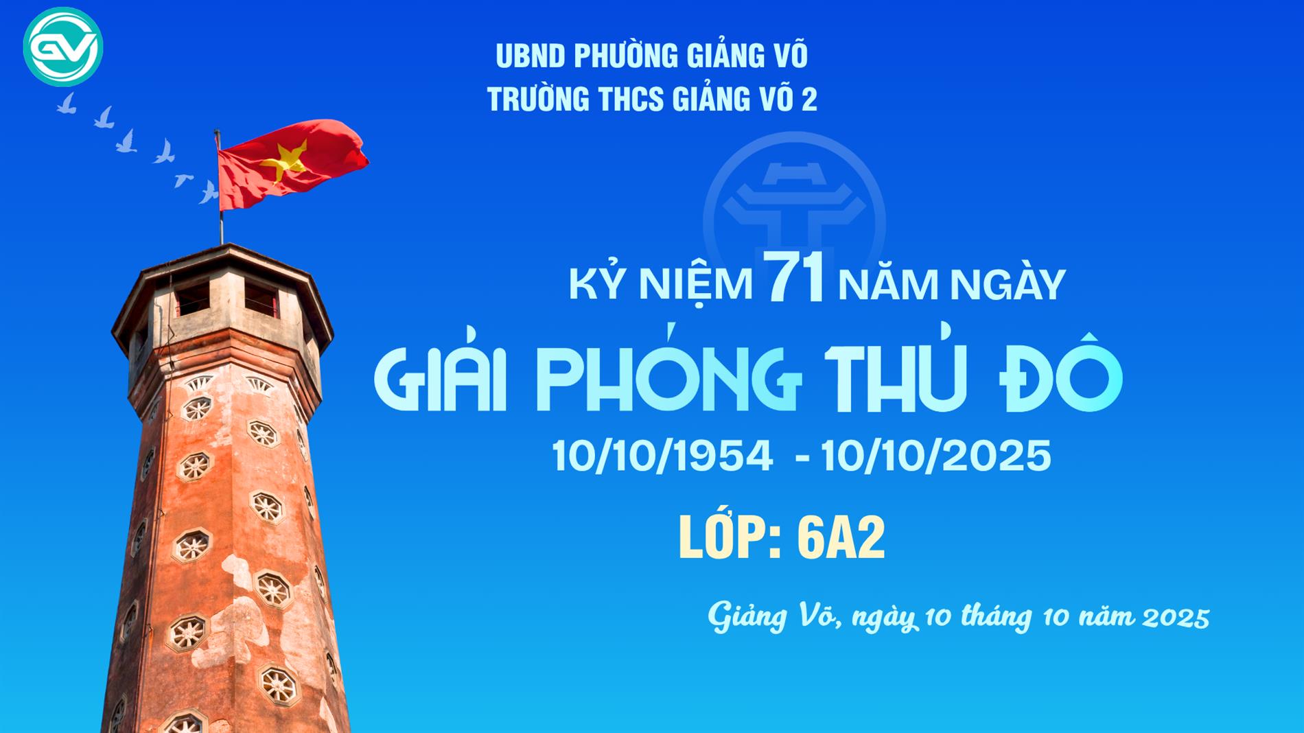 Hòa trong không khí tự hào của cả nước kỷ niệm 71 năm Ngày Giải phóng Thủ đô (10/10/1954 – 10/10/2025), tập thể lớp 6A2 – trường THCS Giảng Võ 2 đã tổ chức buổi sinh hoạt kỷ niệm Ngày Giải phóng Thủ đô với nhiều hình thức sinh động, giúp học sinh tìm hiểu lịch sử và thêm yêu mảnh đất Hà Nội – trái tim của Tổ quốc