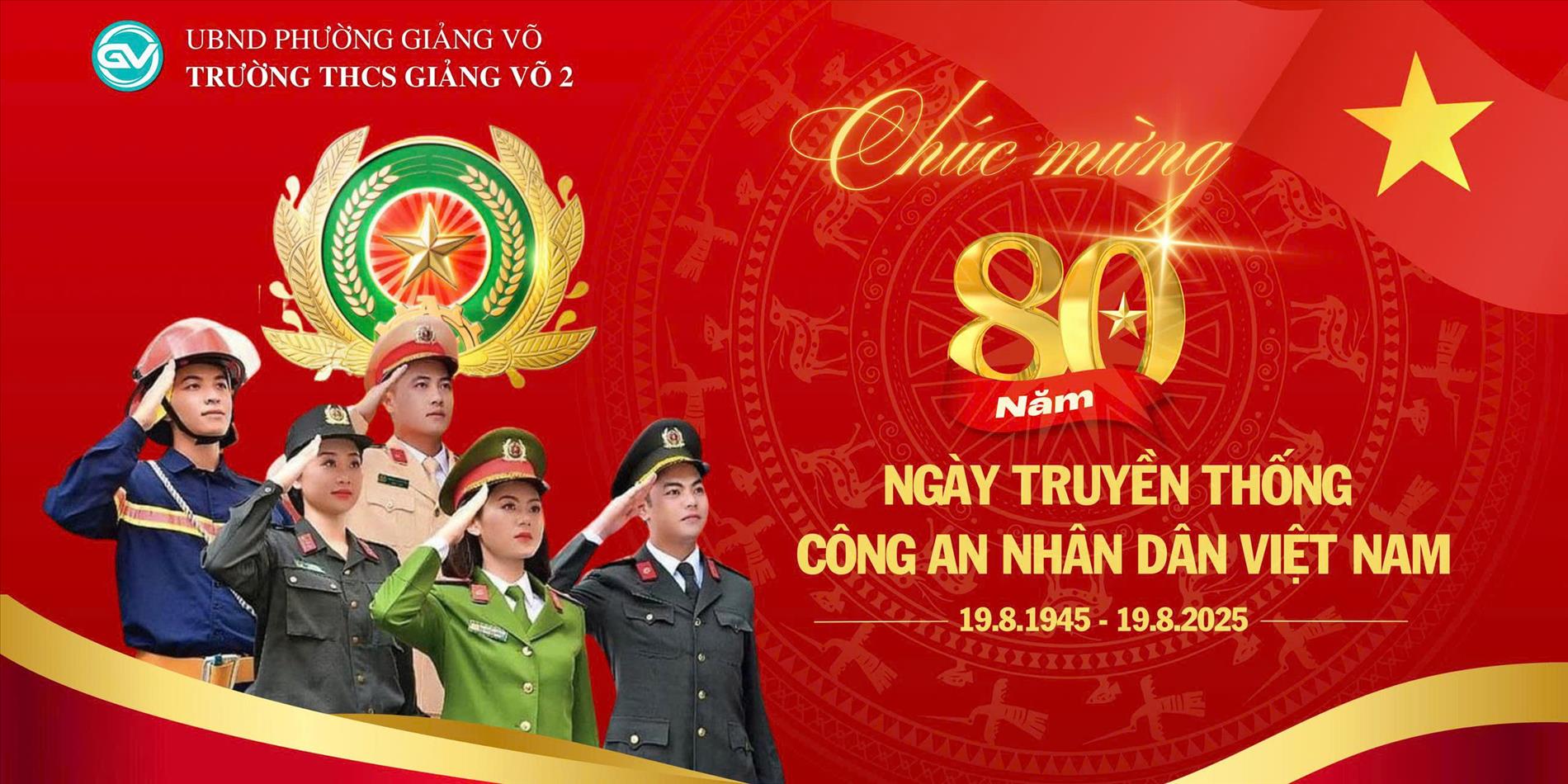 Chi tiếtHướng tới kỷ niệm 80 năm Ngày truyền thống Công an nhân dân Việt Nam (19/8/1945 – 19/8/2025) và 20 năm Ngày hội toàn dân bảo vệ an ninh Tổ quốc (19/8/2005 – 19/8/2025), tập thể cán bộ, giáo viên, nhân viên và học sinh trường THCS Giảng Võ 2 xin gửi tới lực lượng Công an nhân dân những tình cảm trân trọng cùng lời chúc mừng tốt đẹp nhất.