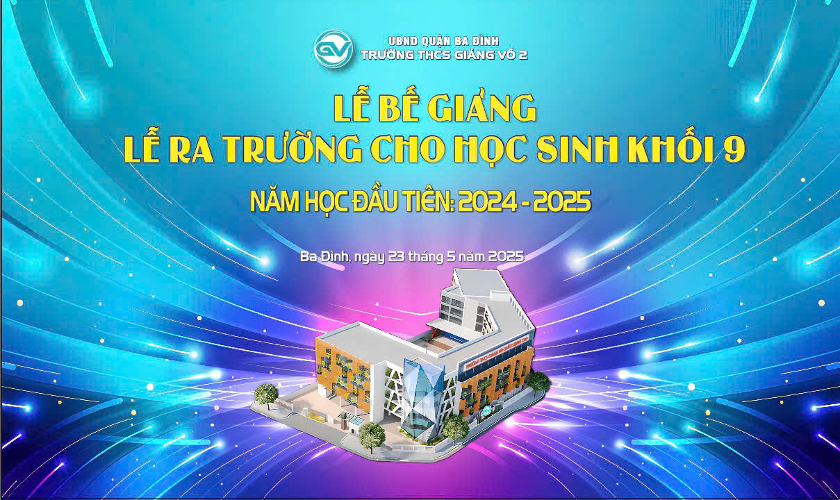 Chiều ngày 23/5, trường THCS Giảng Võ 2 long trọng tổ chức Lễ tổng kết năm học 2024–2025 và Lễ ra trường cho học sinh khối 9 – sự kiện đánh dấu lễ bế giảng đầu tiên trong lịch sử hình thành và phát triển của nhà trường.