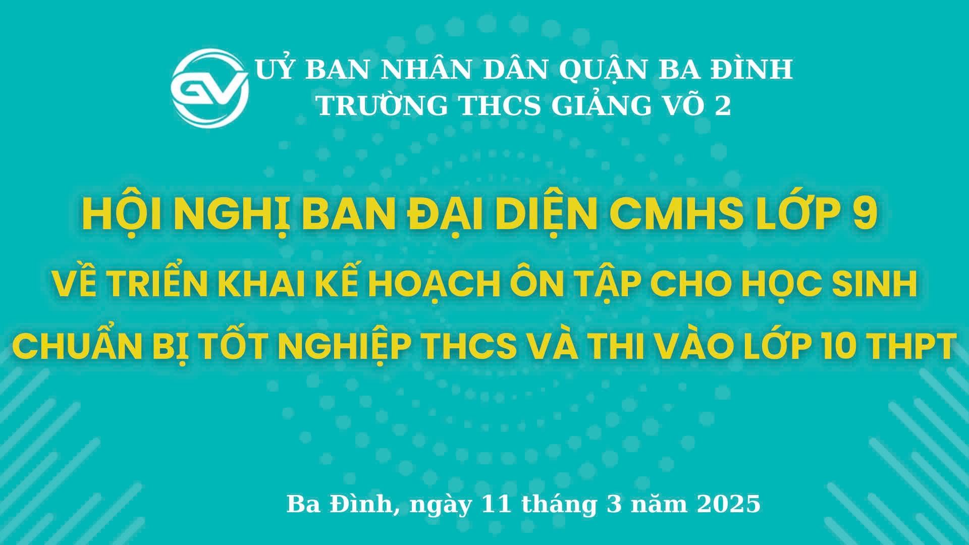 Hội nghị Ban đại diện Cha mẹ học sinh lớp 9 trường THCS Giảng Võ 2, quận Ba Đình - Đồng hành cùng học sinh trong chặng đường “nước rút” quan trọng 14/03/2025 Chi tiết