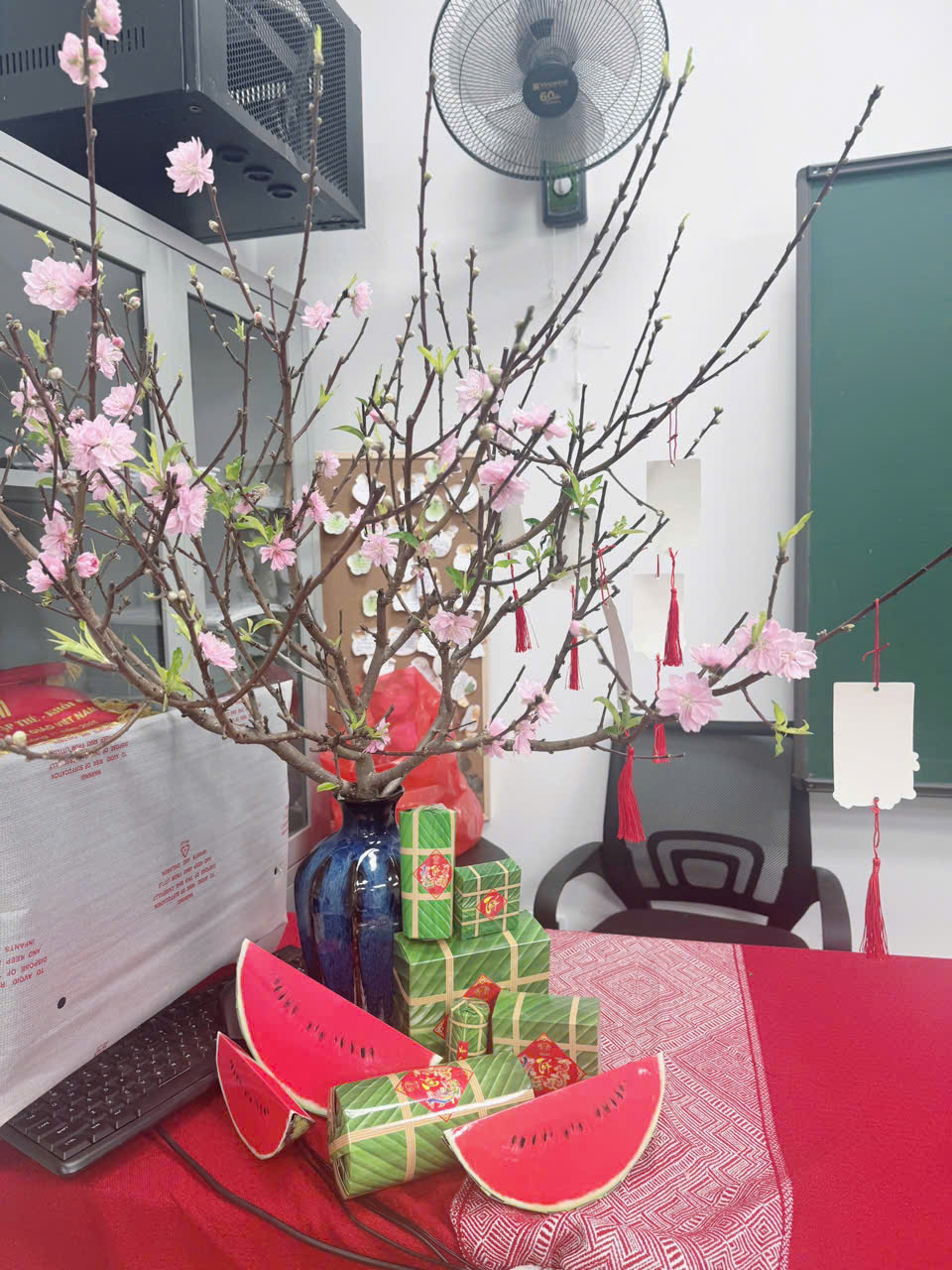 Không gian lớp học được trang trí đậm sắc xuân, mang đậm không khí Tết Nguyên đán