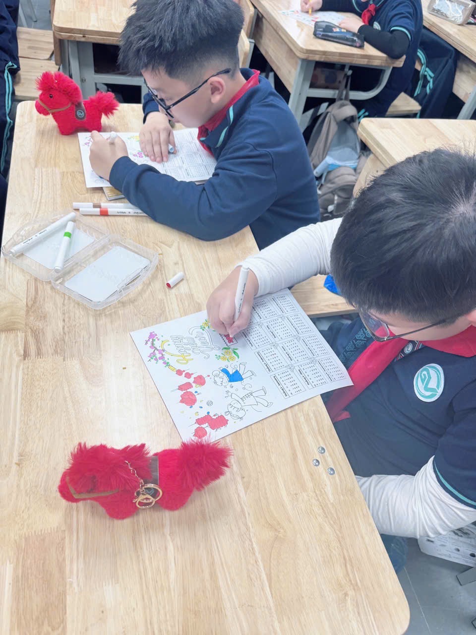 Các bạn nhỏ đã tự tay tô màu, trang trí lịch Tết, vẽ tranh với chủ đề mùa xuân, gia đình sum họp và các biểu tượng quen thuộc của ngày Tết cổ truyền. Mỗi sản phẩm đều mang màu sắc riêng, thể hiện sự khéo léo, sáng tạo và cảm nhận rất hồn nhiên của các em về Tết Việt.