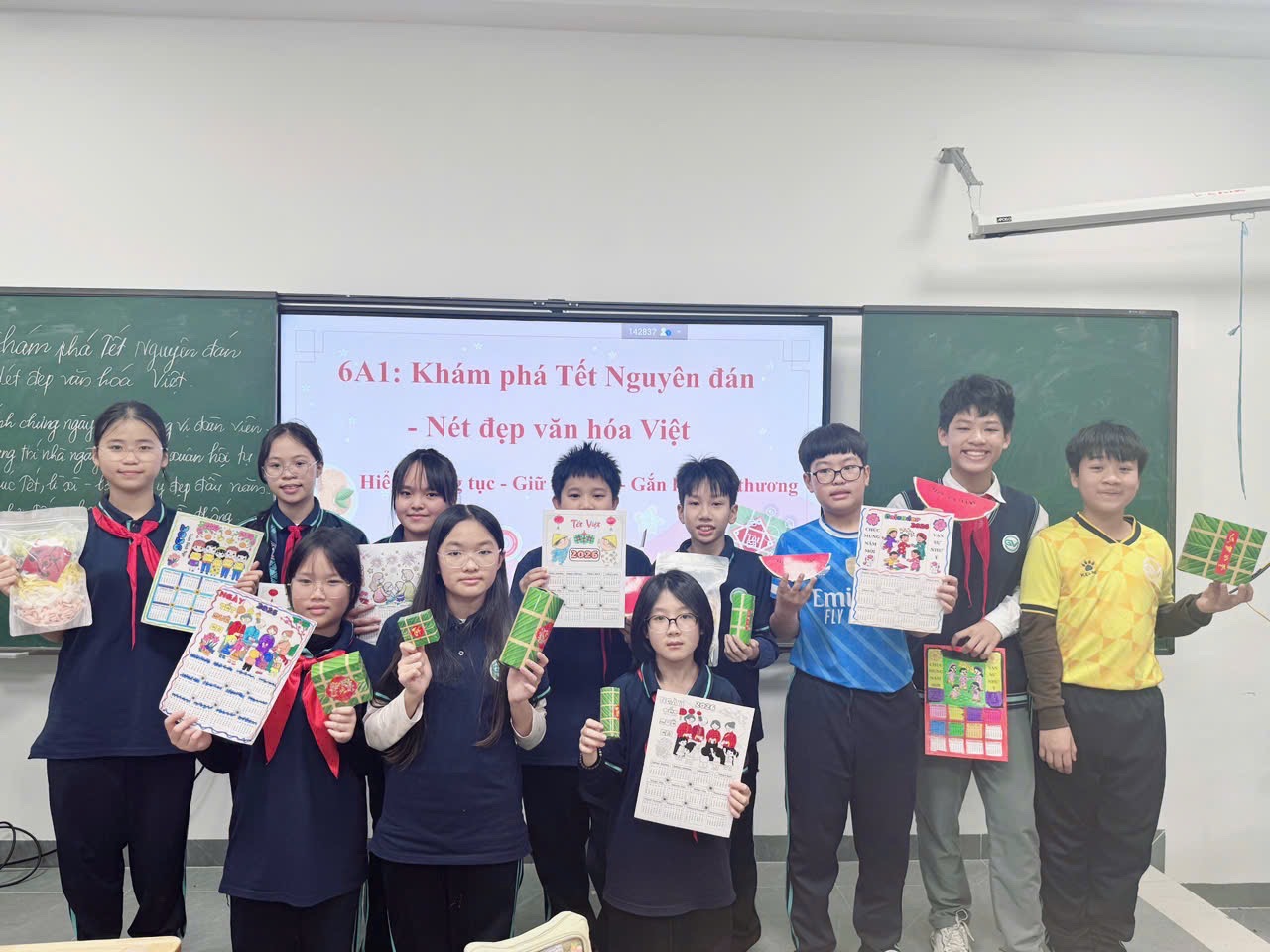 Trong không khí rộn ràng của những ngày giáp Tết, khi những làn gió rét và mưa phùn của ngày cuối năm báo hiệu mùa xuân sắp về, trong giờ học giáo dục địa phương của cô Lê Thúy Mai các bạn lớp 6A1 được tham gia trải nghiệm “Khám phá Tết Nguyên đán – Nét đẹp văn hóa Việt”. Đây là dịp để các em học sinh tìm hiểu sâu hơn về những phong tục truyền thống tốt đẹp của dân tộc, đồng thời bồi đắp tình yêu quê hương và sự gắn kết tập thể.