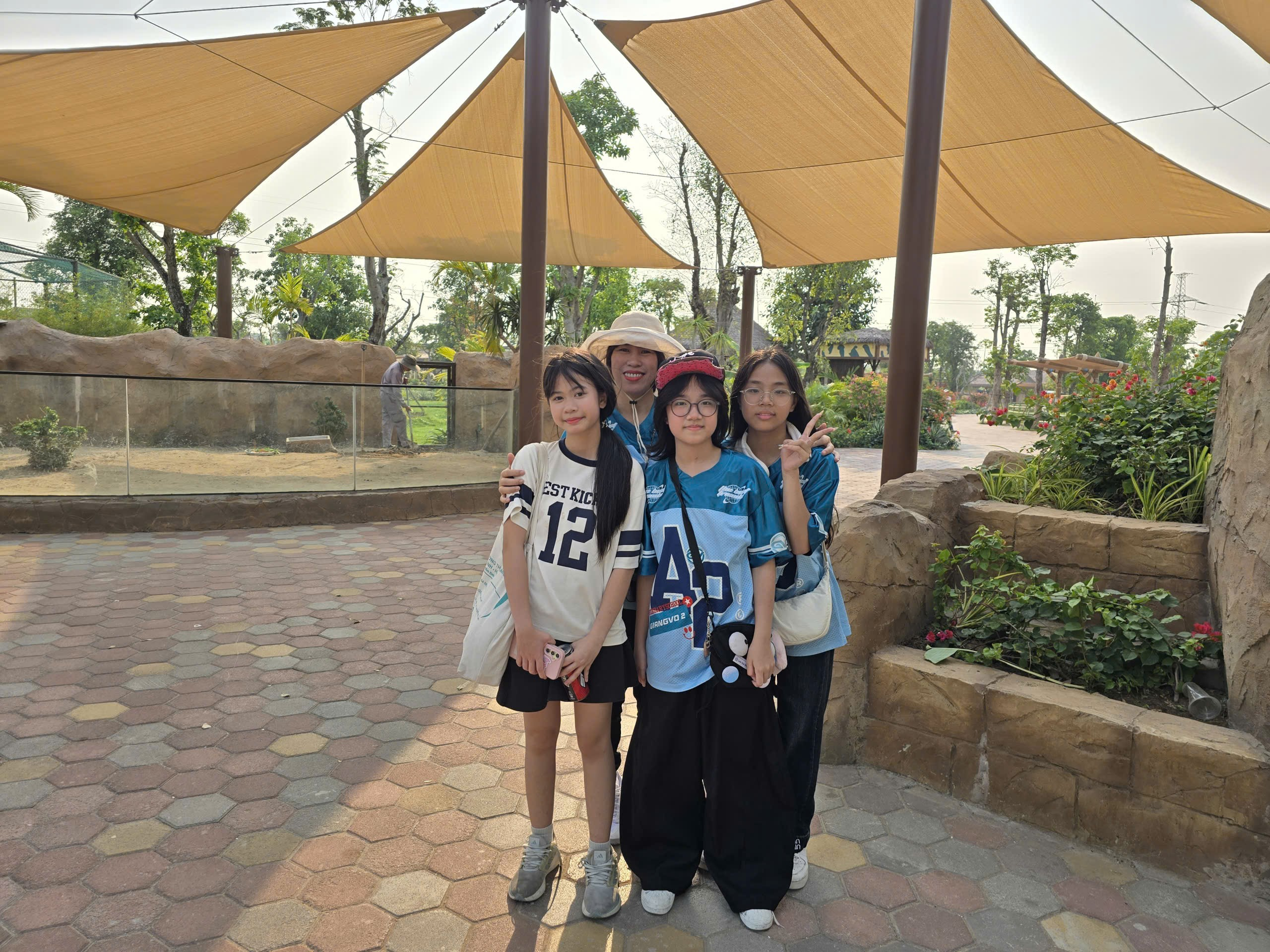 Các bạn học sinh lớp 7 cùng cô giáo chủ nhiệm lớp 7A2 tại khu Safari