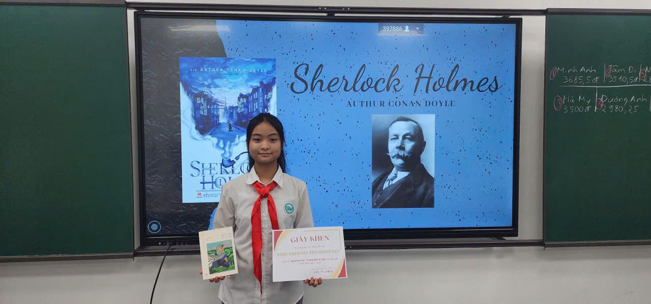 Bạn Ngọc Vân với bài dự thi về cuốn sách Sherlock Holmes