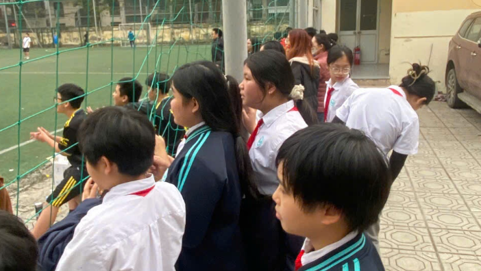 Trên khán đài, các bạn cổ động viên của 7A8 cũng chính là một điểm sáng của buổi thi đấu. Dù đội nhà bị dẫn trước, những tiếng hô “A8 cố lên!” vẫn vang đều, không hề tắt đi. Sự cổ vũ ấy không chỉ tiếp thêm sức mạnh cho các cầu thủ mà còn thể hiện sự gắn bó, tinh thần tập thể đáng quý của cả lớp. Đó chính là chiến thắng của sự đồng lòng – khi tất cả cùng hướng về một mục tiêu chung.