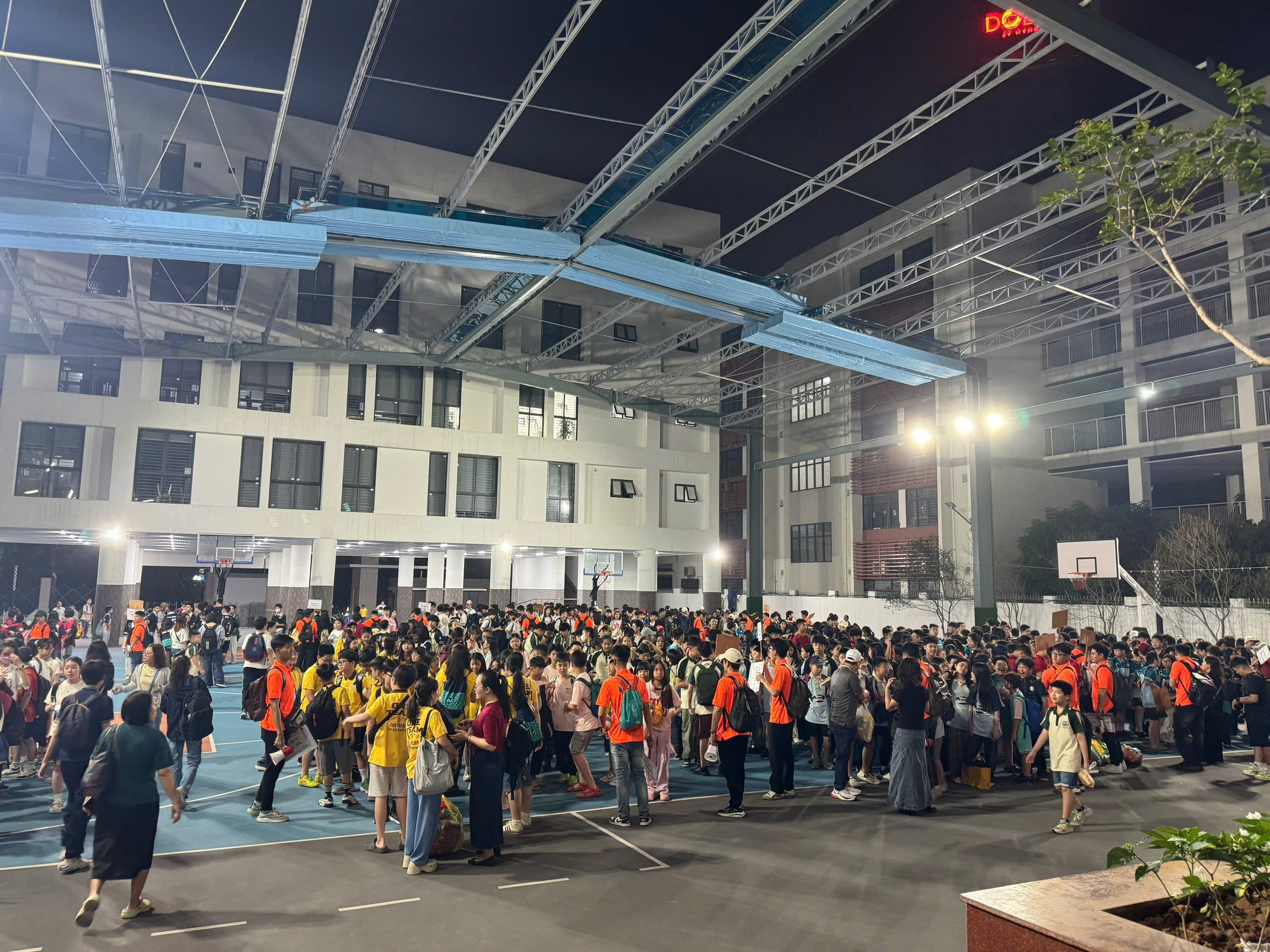 Sân trường nhộn nhịp lúc 5h sáng.