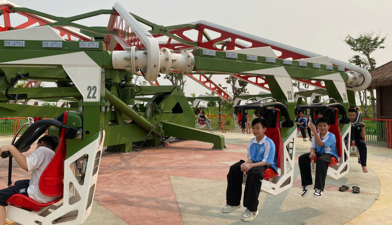 Những trò chơi cảm giác mạnh nhanh chóng trở thành điểm đến hấp dẫn nhất. Các bạn học sinh đã cùng nhau thử sức với những trò chơi nổi bật như “Quái thú trỗi dậy”, “Cơn lốc Maya”, “Cạm bẫy rừng xanh”… Tiếng hét phấn khích xen lẫn những tràng cười giòn giã vang lên không ngớt, thể hiện tinh thần dũng cảm và sự nhiệt huyết của tuổi trẻ. Dù có chút sợ hãi ban đầu, nhưng ai cũng muốn vượt qua giới hạn của bản thân và trải nghiệm cảm giác hồi hộp, kịch tính.