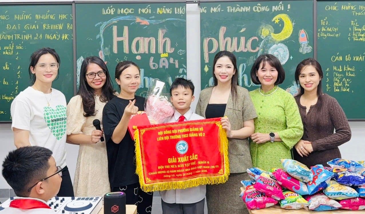 Nhắc lại niềm tự hào từ ngày lễ tri ân thầy cô giáo 20/11, lớp 6A4 đã vinh dự được trao giải xuất sắc với tiết mục văn nghệ “6A4 – Việt - Anh - Hàn – Tự hào Giảng Võ 2”. Buổi sinh hoạt hôm nay lại một lần nữa khơi dậy ký ức về những ngày tập luyện chăm chỉ, nghiêm túc nhưng cũng đầy niềm vui và sự háo hức. Tiết mục ấy không chỉ là một màn trình diễn, mà còn là minh chứng cho tinh thần đoàn kết, sự sáng tạo và năng lực của tập thể. Những tràng pháo tay vang lên như lời khẳng định: 6A4 có thể làm được những điều tuyệt vời khi cùng nhau nỗ lực!