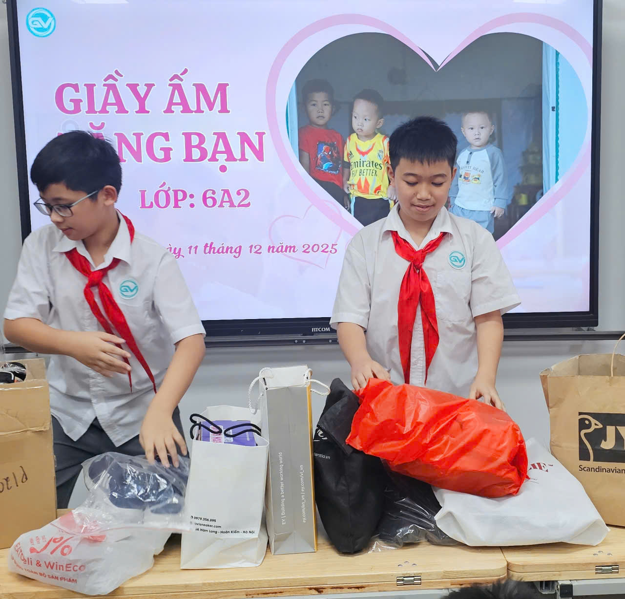 Lớp 6A2 tổ chức hoạt động thiện nguyện “Tặng bạn giày ấm – Chung bước tới trường”