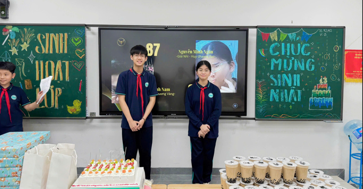 Buổi sinh hoạt lớp không chỉ là khoảng thời gian tổng kết lại chặng đường học tập vừa qua mà còn là dịp để tập thể lớp 7A8 cùng nhìn lại những thành tích đáng tự hào, sẻ chia niềm vui và thắt chặt hơn nữa tinh thần đoàn kết. Buổi sinh hoạt lần này đã diễn ra trong không khí ấm áp, sôi nổi với ba nội dung chính: khen thưởng các bạn có thành tích xuất sắc, tổ chức sinh nhật cho các bạn từ tháng 2 đến tháng 6 và chương trình liên hoan đầy ý nghĩa.