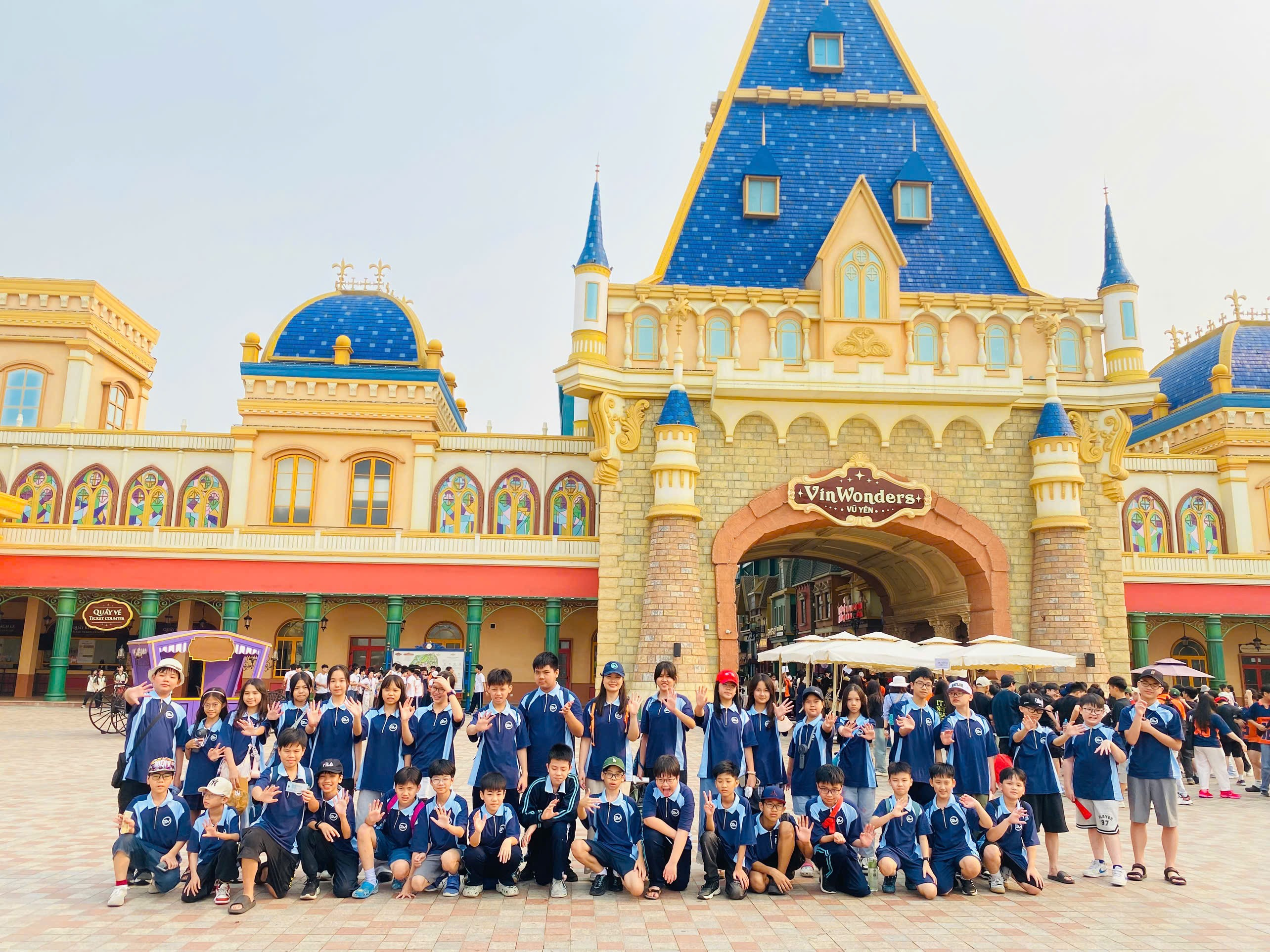 Sau gần ba tiếng di chuyển rộn ràng tiếng hát và tiếng cười, chiếc xe cuối cùng cũng đưa chúng tôi đến điểm tham quan. Đúng 8 giờ 30 phút, chúng tôi chính thức đặt chân đến Công viên Giải trí VINWONDERS Vũ Yên, nơi được mệnh danh là thiên đường giải trí với vô vàn điều thú vị.