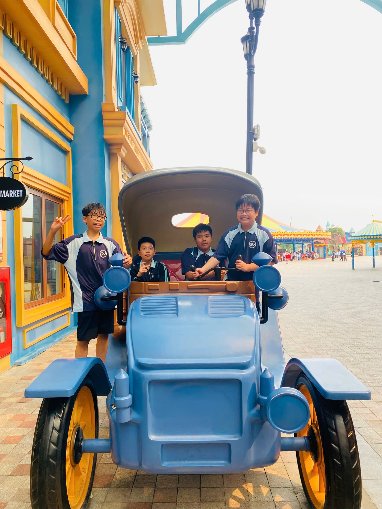 Cả lớp tập trung trước cổng khu vui chơi