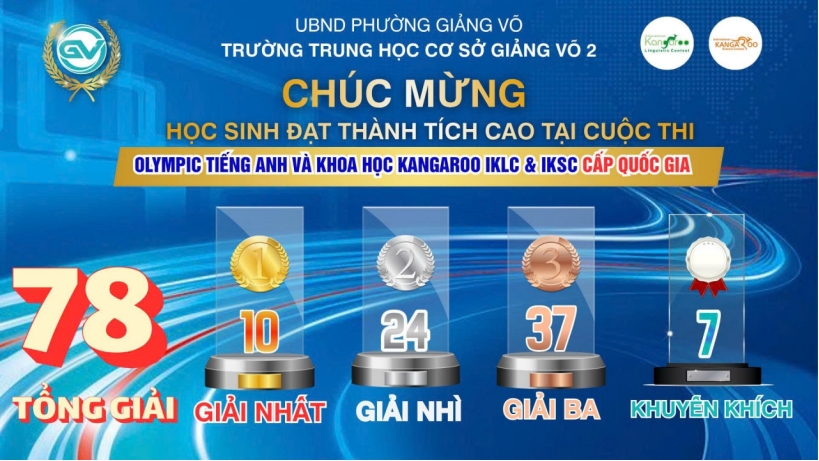 Tiếp tục khẳng định chất lượng giáo dục mũi nhọn và định hướng hội nhập quốc tế, học sinh Trường THCS Giảng Võ 2 đã đạt nhiều thành tích ấn tượng tại Kỳ thi Olympic Tiếng Anh Quốc tế Kangaroo (IKLC) và Khoa học Quốc tế Kangaroo (IKSC) năm 2026.